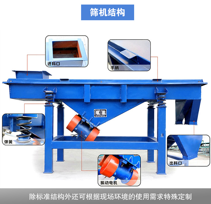 松香分級直線振動篩除標準結構外還可根據現場環境的使用需求特殊定制(如底座加高、進料口加緣、出料口加閥門等等),隨之價格也會有對應的提升,每個型號之間相差600-1500元不等。