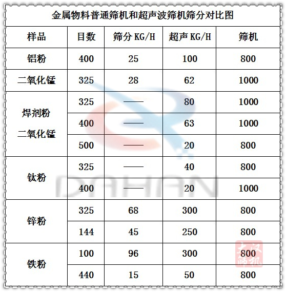 ■在達到高精度、高網(wǎng)目篩分的同時,控制較窄的粒度范圍。 ■可單層與多層使用,一套智能超聲波發(fā)生器同時使用三個換能器。 ■的篩網(wǎng)自潔功能:大于500目篩分,無網(wǎng)孔堵塞,無篩分效率衰減。 ■真正解決強吸附性、易團聚、高靜電、高精細、高密度、輕比重等篩分難題。 ■保證所處理物料的特性不變。 ■篩分精度可提高1―70%,產(chǎn)量可提高0.5-10倍。