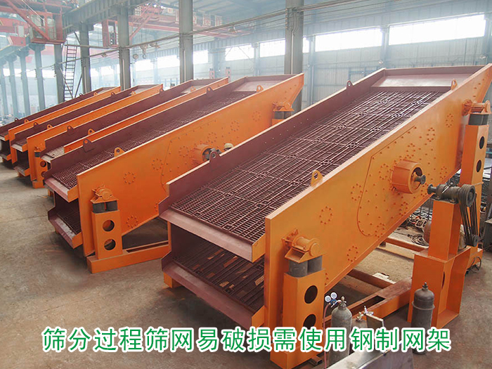 使用礦用篩分機進行篩分時,因其篩分的物料會有一定的的重量,使用普通網(wǎng)架容易造成破損的問題,所以需要使用鋼質網(wǎng)架來代替木質網(wǎng)架,增加網(wǎng)架和篩網(wǎng)的承受能力,更換為鋼制網(wǎng)架的大型礦用振動篩不僅換網(wǎng)比較方便,更可以延長篩網(wǎng)、篩機的使用壽命。