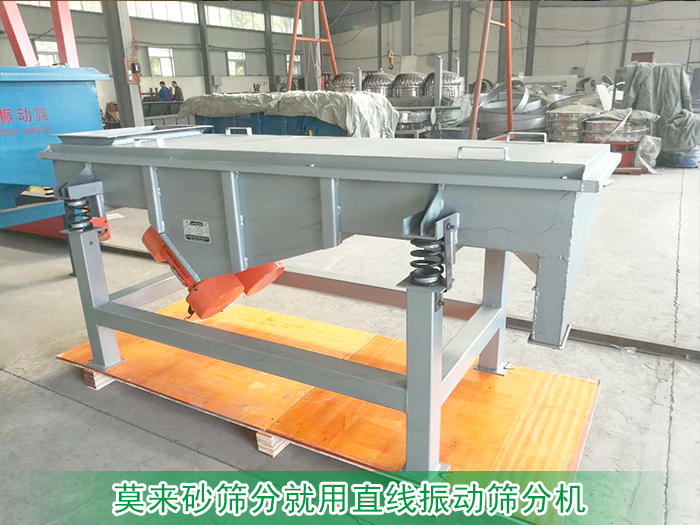 大漢機(jī)械生產(chǎn)的直線振動篩分機(jī)利用振動電機(jī)作為激振源,使莫來砂在篩網(wǎng)上被拋起,同時向前做直線運(yùn)動,莫來砂在給料機(jī)上均勻地進(jìn)入篩分機(jī)的進(jìn)料口,通過多層的篩網(wǎng)產(chǎn)生數(shù)種規(guī)格的莫來砂,分別從各自的出口排出。以達(dá)到篩分目的。